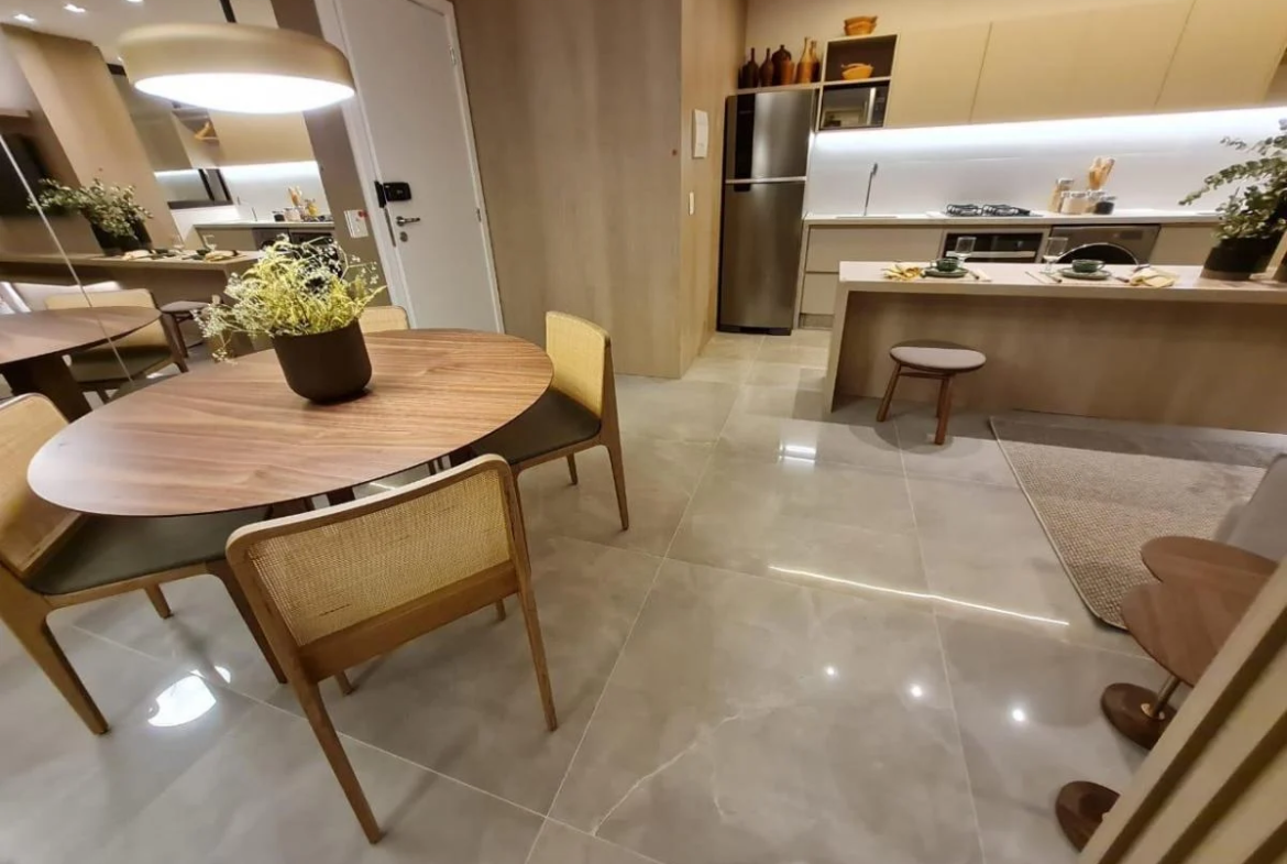 O apartamento possui 2 quartos com plantas inteligentes entre 64m² e 68m², ambientes planejados para oferecer funcionalidade, conforto acústico e excelente aproveitamento dos espaços. Conta ainda com 2 vagas de garagem, proporcionando praticidade e segurança no dia a dia.