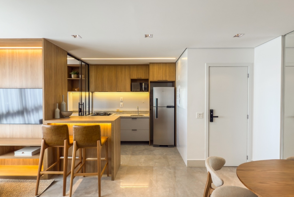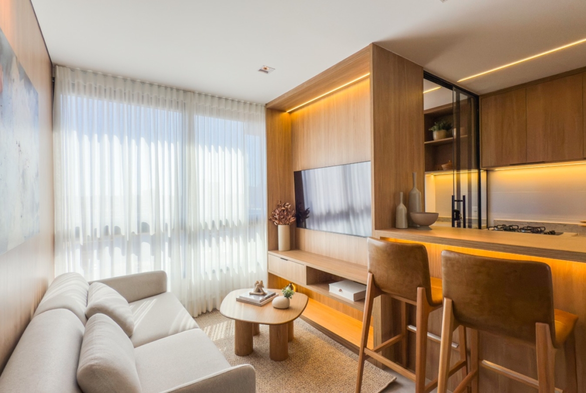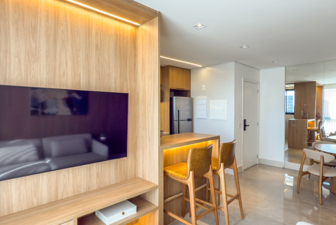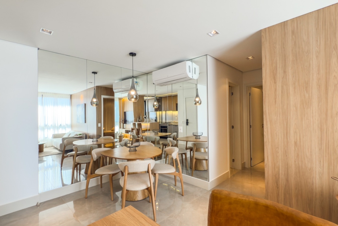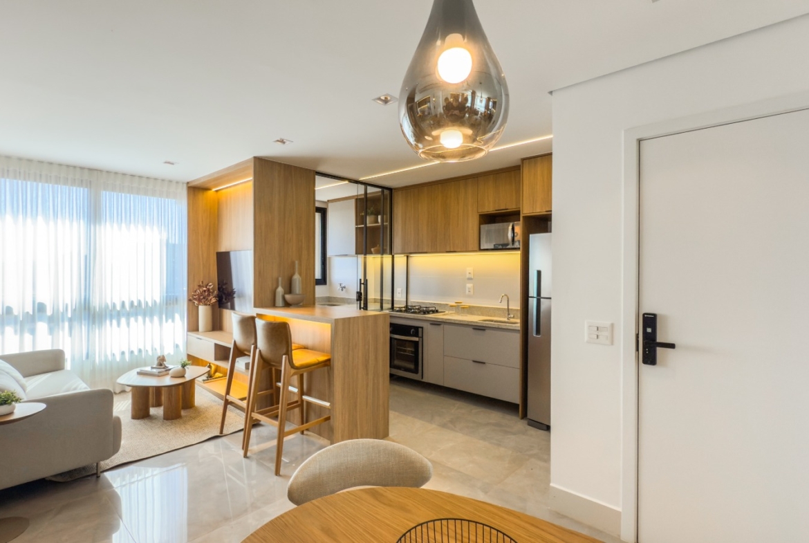 O imóvel está pronto para morar ou alugar, com exclusivo Kit Locação completo, proporcionando mais comodidade e excelente potencial de rentabilidade. Conta com armários planejados no padrão do decorado, luminárias instaladas, cortinas blackout, ar-condicionado nos quartos, complemento de bancada na cozinha, fogão de bancada, espelhos, box e kit completo de banheiro.