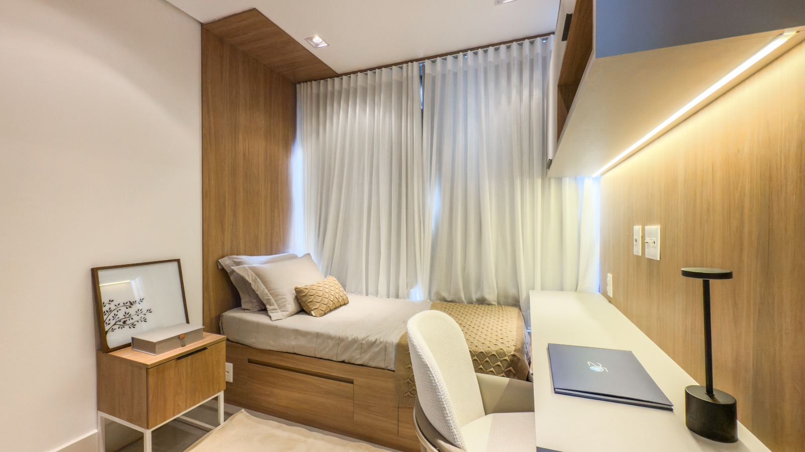 Agende sua visita e conheça o apartamento decorado na Central de Vendas FAENGE Park Sul, em frente à Padaria Pão Dourado.